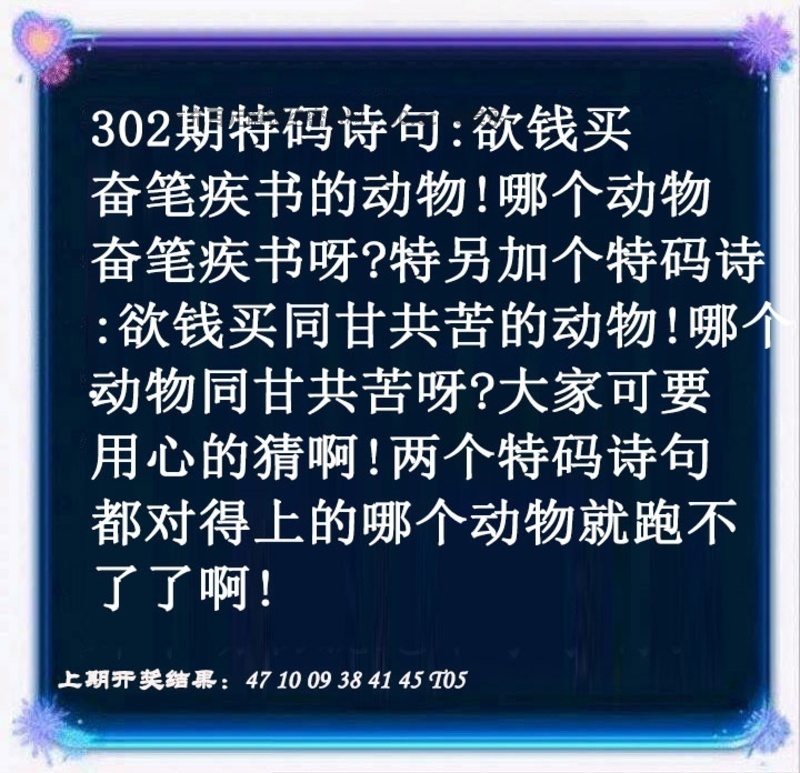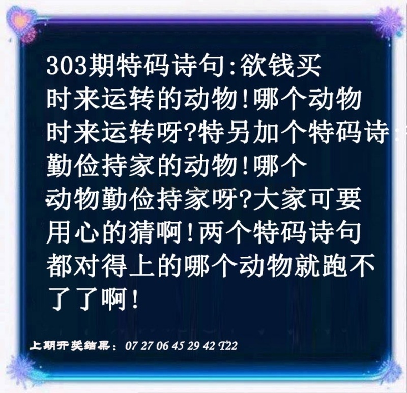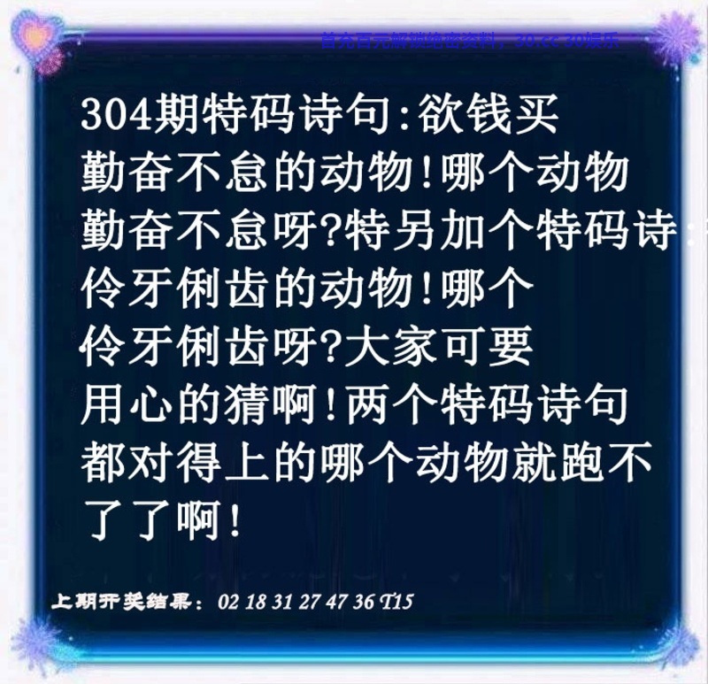 304期 欲钱买勤奋不怠的动物 解释:勤奋不怠解:龙牛蛇猴 欲钱买伶牙俐齿的动物 解释:伶牙俐齿解:羊狗马 七肖:羊狗马龙牛蛇猴 |